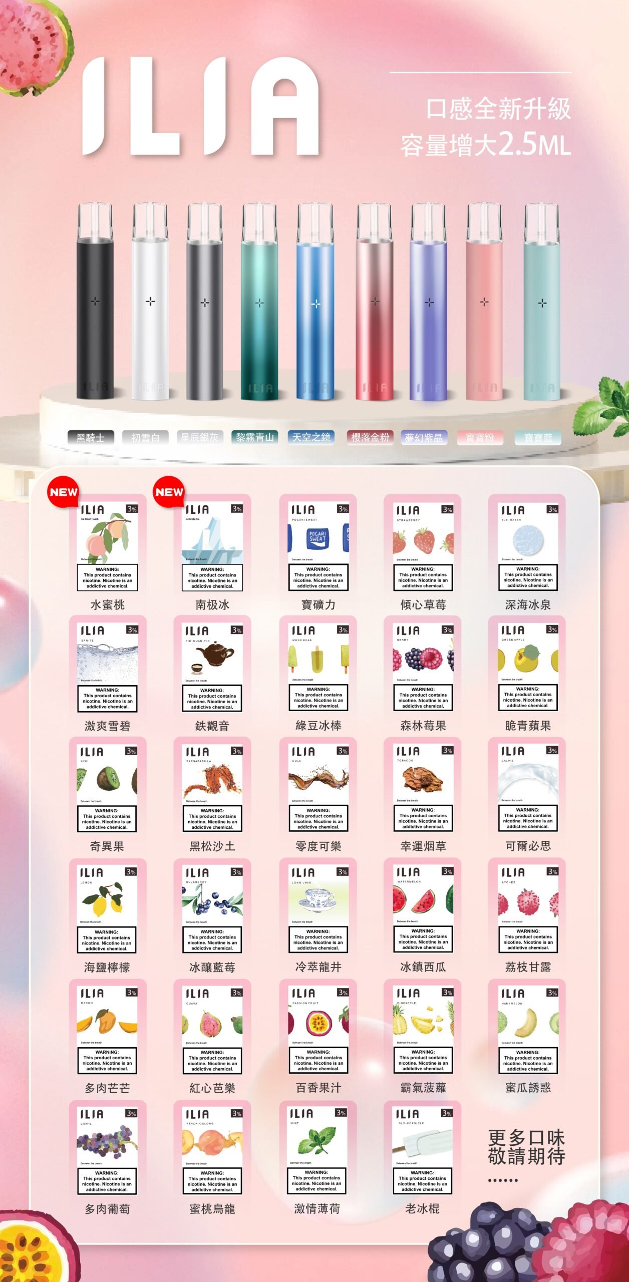 6色可選|ILIA布紋主機 哩亞換彈式霧化桿 通用一代煙彈 雙檔功率調節 OLED屏幕顯示